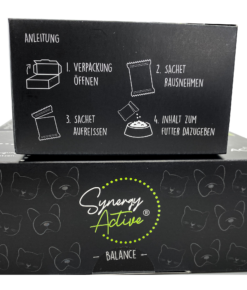 SynergyActive® balance sollte langsam in das entsprechende Tierfutter eingeschlichen werden. Bei Bedarf kann die Menge schrittweise verdoppelt werden.